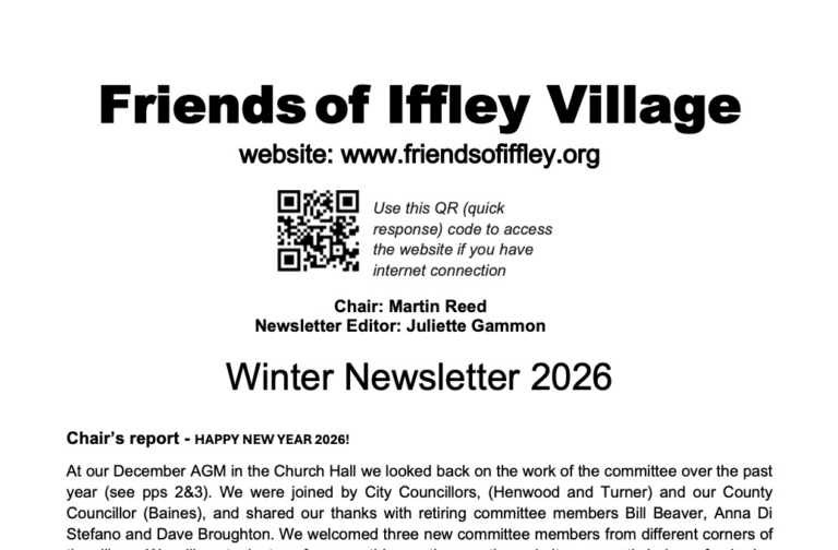 Our membership gives FOIV a mandate to represent Iffley Village in helping to conserve Iffley’s unique character and in fostering community spirit. The more residents join, the greater our mandate and the greater our effectiveness in influencing City and County Council decision making.